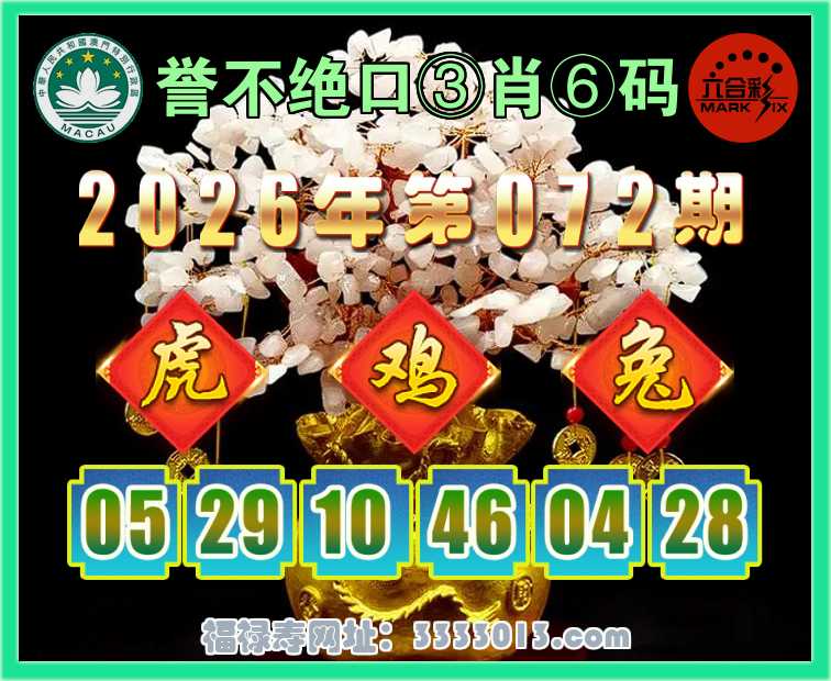 072期:【誉不绝口】 👩‍🌾③肖⑥码👩‍🌾【虎鸡兔】开:00准